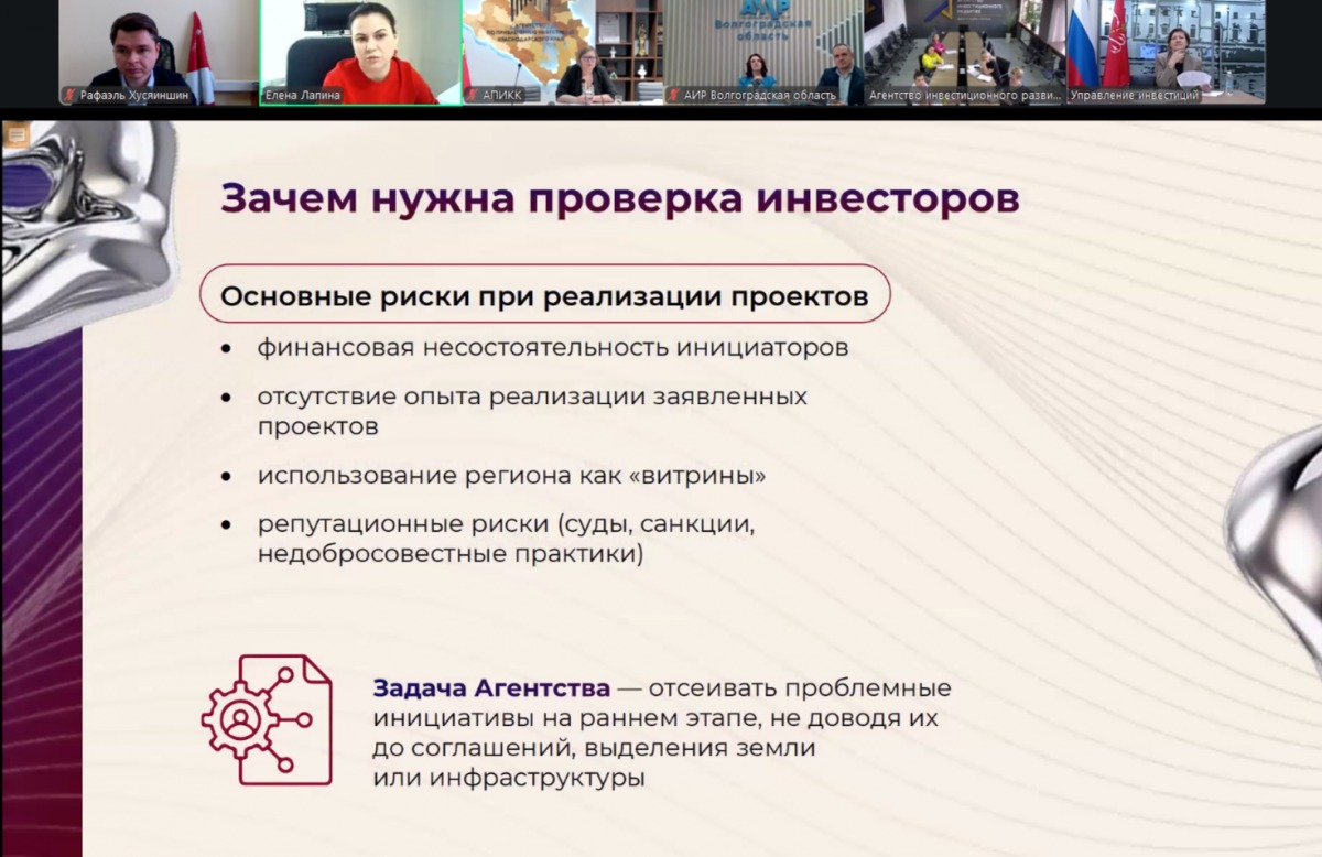 Модератором заседания выступила куратор площадки — руководитель Агентства инвестиционного развития Волгоградской области Анна Чернова.